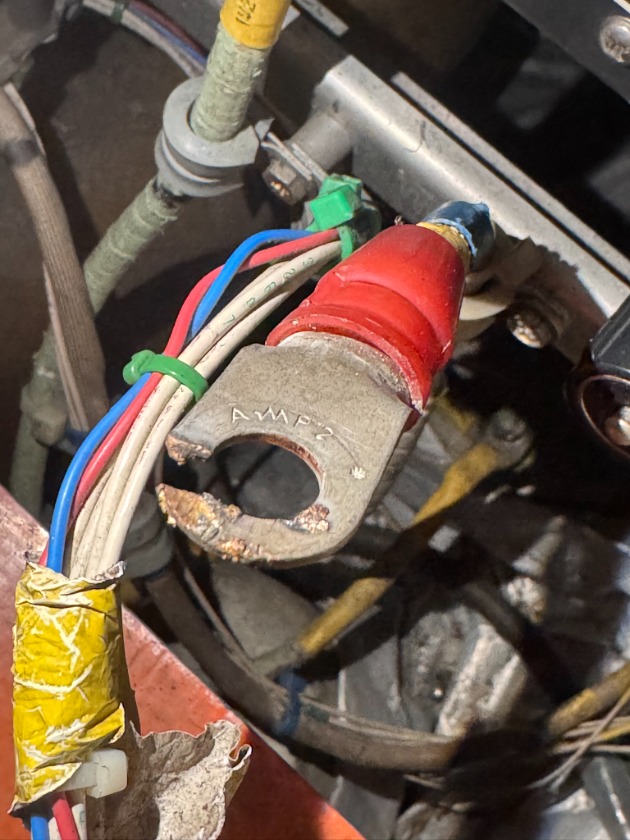 Lug nut not fully tightened..... and a burned terminal.
