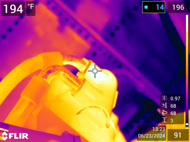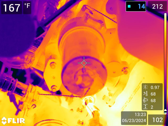 The interesting point is what the thermal imager could do for troubleshooting this issue. The oil cooler exhaust should run about the same temperature as the oil in the outlet line from the oil cooler and the oil pressure filter housing.