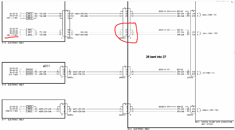 With this particular aircraft's problem, I pulled or unplugged every user component and the IRU itself. I wanted to make sure that the ground I was seeing was not being read through one of the boxes. The ground was still present with all boxes removed. Due to weather conditions and allotted time, I was not able to proceed further with the troubleshooting.