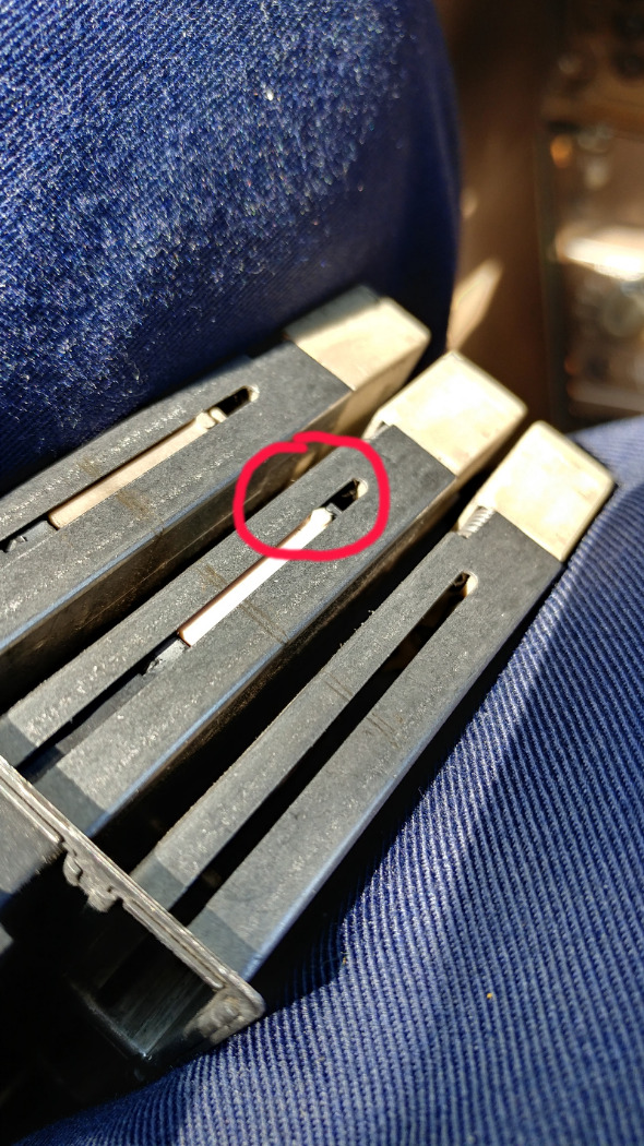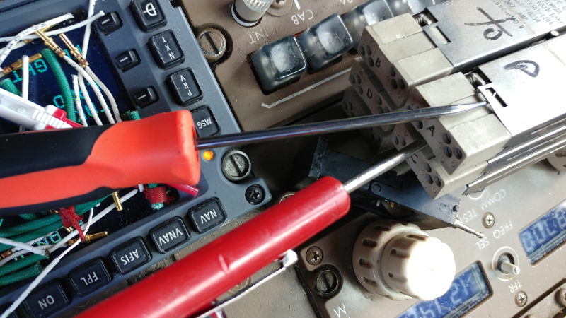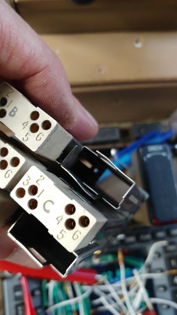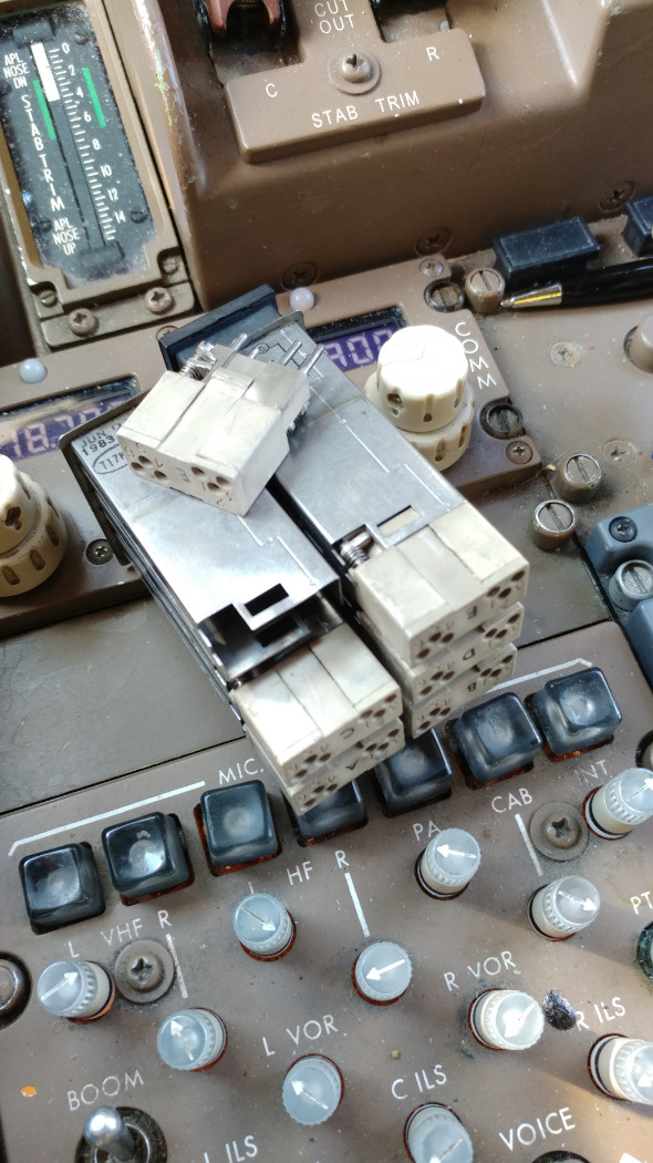 This job was really quite a pain in the ass. Finding the right combination of annunciators to diode blocks was frustrating. The pedestal was strewn with chunks of parts everywhere. The stuck spring pins on the bad bases could be seen from inside the sleeve, so the ones requiring replacement where identified quickly.