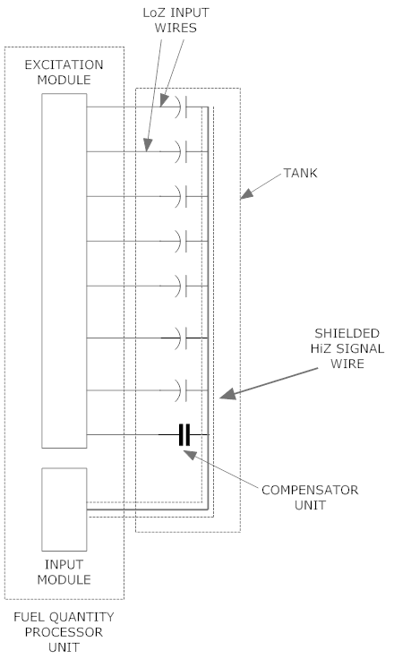 also contains a compensator, which senses the dielectric of the fuel. Both the tank units