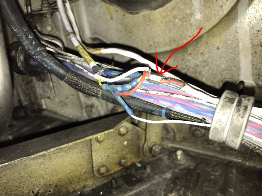 Just up-stream (towards fuselage) we found a bundle wrapped in F4 tape. What are the odds that our problem is there???