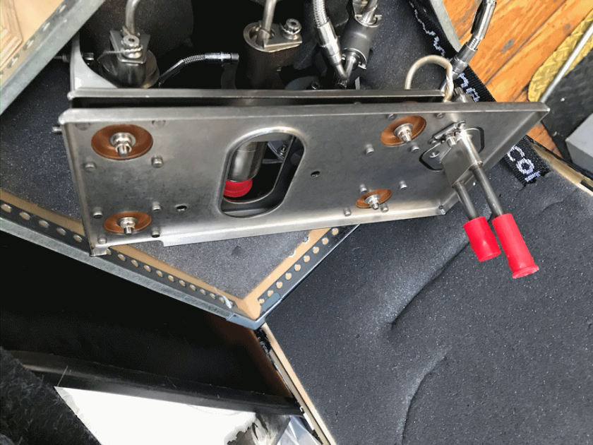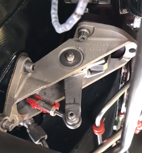 In the image below the IGV actuator arm cover has been removed. The rod is fully extended (vanes open). For start, the rod should be pushed full travel inwards.