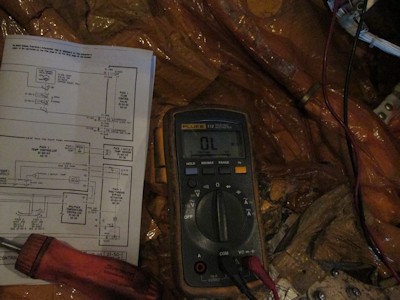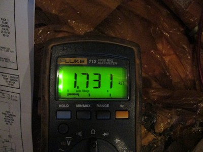 Compared pins "e" and "f" (both little) at pack temp controllers. These connect to the outlet temp sensor. Found #3 open while #1 & #2 read approx 1.7k ohms. Shot the sensor directly to eliminate wiring.... it was open.