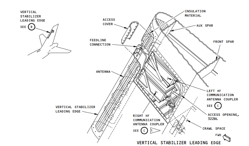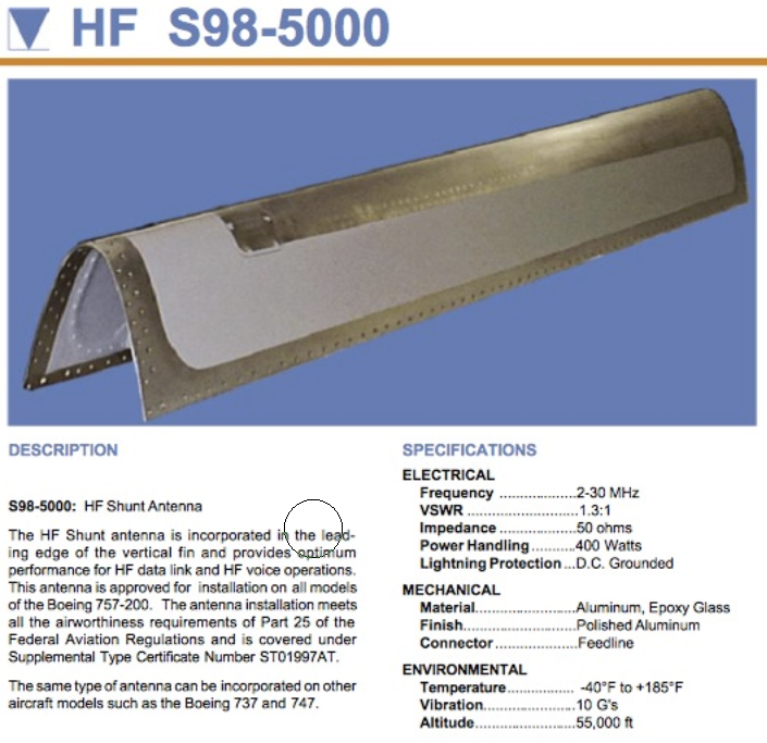 As a note: antenna length is determined by frequency. The higher the frequency - the shorter the antenna. 1090Mhz (ATC, TCAS, DME antennas are about 2" high. VHF 118.000MHz - 136.975MHz antennas are about 18" long. The HF antenna is a fixed length, but HF frequency range is quite large. The coupler has three motors that drive two variable capacitors and one inductor which "tune" the antenna system for best transmission from the R/T.