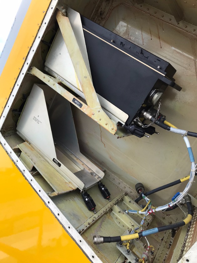 Frequency selection is accomplished from a panel in the cockpit.