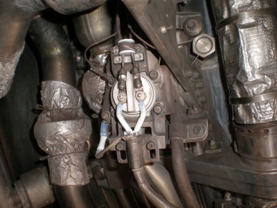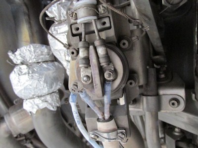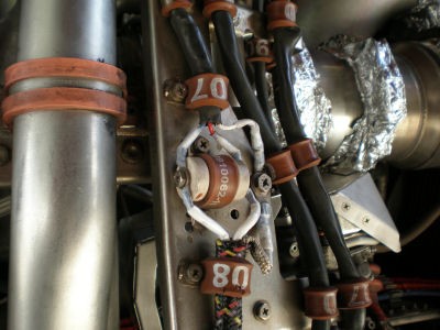 That harness then splits. One segment to the gearbox, one to the lower turbine. In actuality, two sets of wires go to the gearbox and then one set back-tracks up the harness, through the "Y" and then on to the lower turbine element.