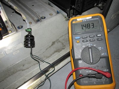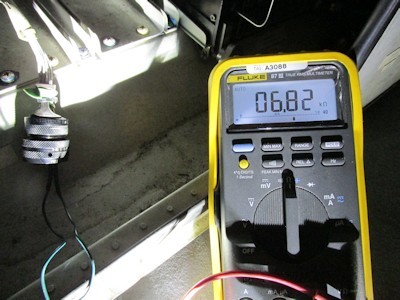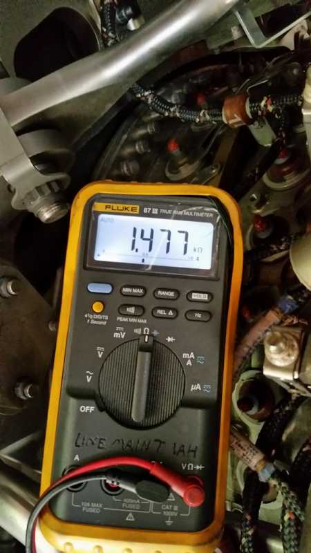 We gained access to the controllers and shot each loop system. Loop "A" was 1.4K ohms thru pins D and R (as you count the pins...... "A" is not marked but it aligns with the main key-way and there is no I,O,or Q). Loop "B" read 6.8K ohms. Both loops on the opposite engine read 1.4K also.