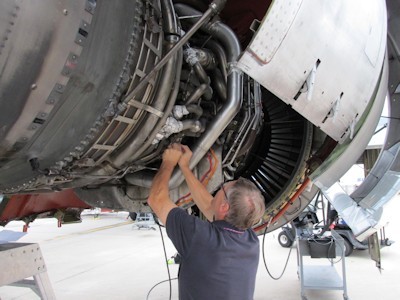Out on the engine we wanted to break the loops in half. This "was not" convenient to do. The easiest break point was the lower turbine element. Breaking into the system here was a 3 to1 split with the gearbox loop being the 1 and the remaining 3 being all the turbine elements. We disconnected one wire from the "lower" lower turbine loop connector. Located engine right about 5 o'clock. This isolated the two sides. It is also important to note that the plug was "off" the controller in the E/E to keep it out of the system.