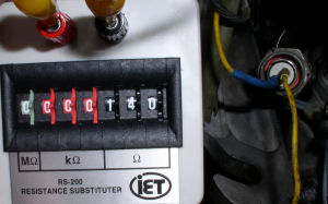 A Gulfstream III had an engine fuel temperature indication that was pegged out high. Fuel temp sensors are resistance based. I was able to use the decade box to verify whether the bulb or indicator was faulty. I found that the indication was at it low limits around 75Ω and at the high limit around 125Ω. The bulb installed on the engine read “open”. The indication was correct after the bulb was replaced.