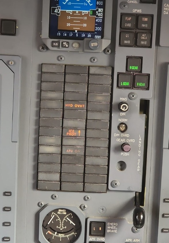 Next thing we tried to do was pull the aux hydraulic handle in the flight deck. This should separate the landing gear system from the main system. If we tested it again and the test passed we would know that the fault is somewhere in the landing gear hydraulic system. With the landing gear isolated from the system we ran the test again but still failed.