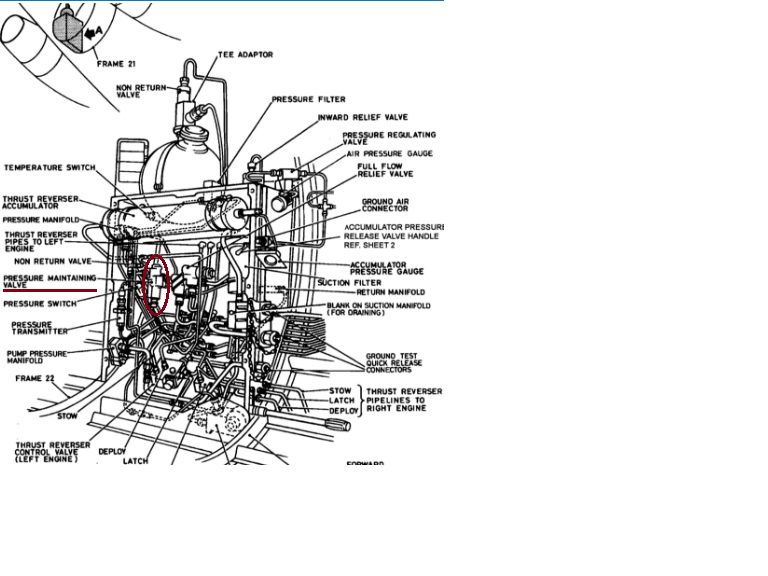At this point we decided to go after the low hanging fruit and disconnect some of the main component returns to see if they bypass under pressure. We tried nose wheel steering, brakes, emergency brakes, main accumulator discharge handle. All of these components check good so we decided to start digging into it.