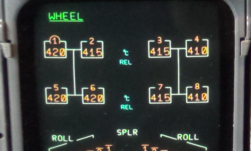 The temps were not steady. They were jumping all over the place from 400 to 20. The brake temp "HOT" light on the cooling switch kept flashing on/off and I got a never-ending set of "bings" from the flight warning system.