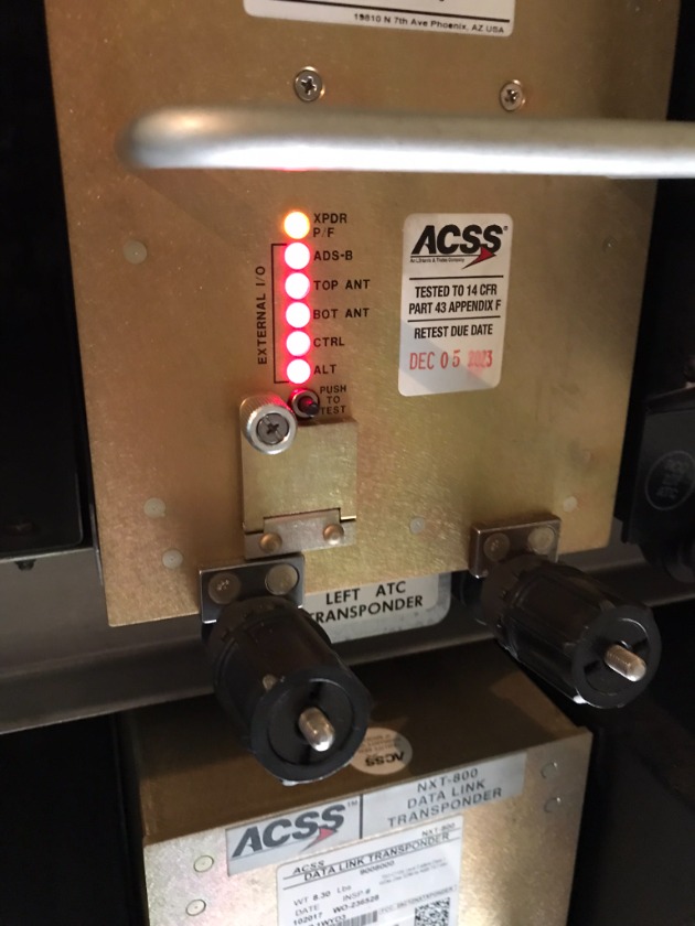 ATC transponder unit with self test lights not working when button pushed.