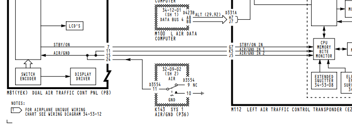On the 767 (at least this -300 aircraft) two air/ground relays provide the control panel and transponder an electrical ground signal when the aircraft is in a "weight on wheels" (on terra firma) condition.