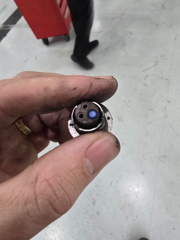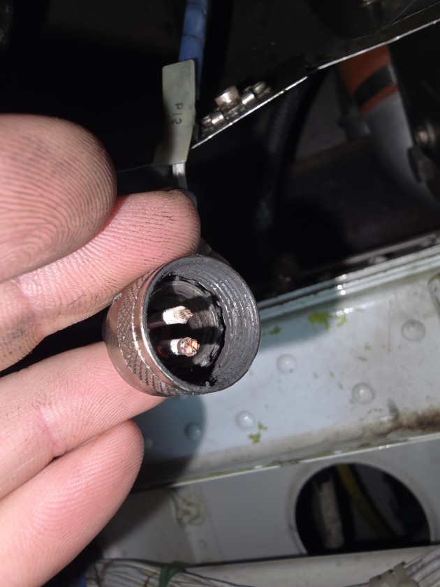 Oddly enough once I depanled the APU shroud the light went out, at first I was thinking possible chaffed wire touching the shroud or something like that, also the way the back shell was laying the back shell and wiring were both touching the shroud. Before I got to do anything else I started to inspect the plug and was still getting my High resistance reading from the High Oil Temp S/W to the plug. Further inspection and removal of the connector back shell showed me the real problem.