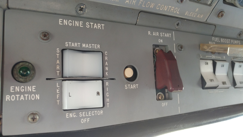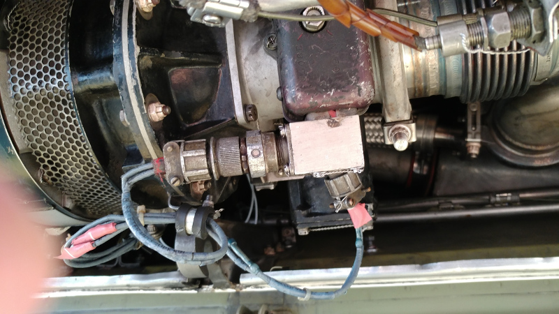 The starter has a centrifugal switch built in. (Switch plug not visible in this image. On the left engine, the starter is mounted inboard next to the pylon. The plug is at the 2 o'clock position when viewed back to front.)
