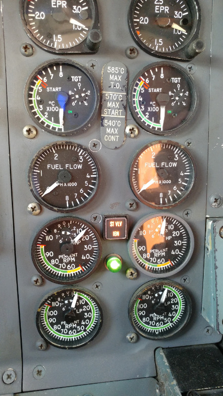 Engine at 14%. Start valve and ignition lights on. Green rotation light on.