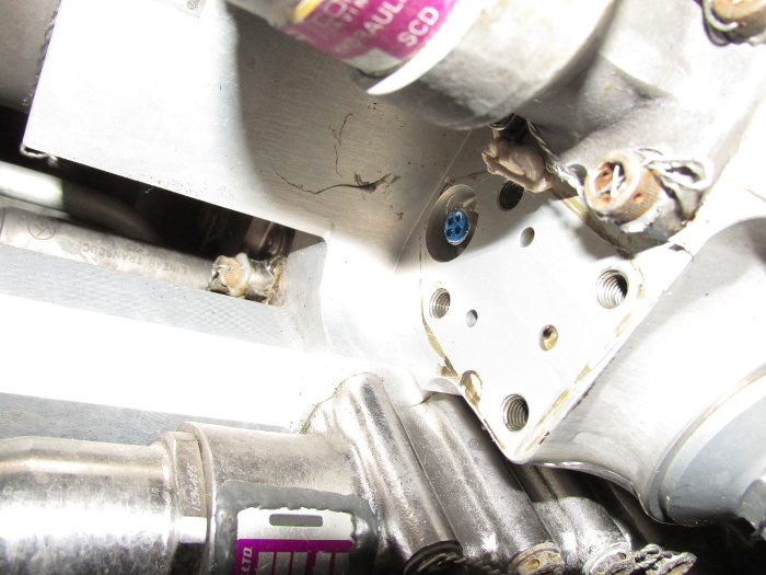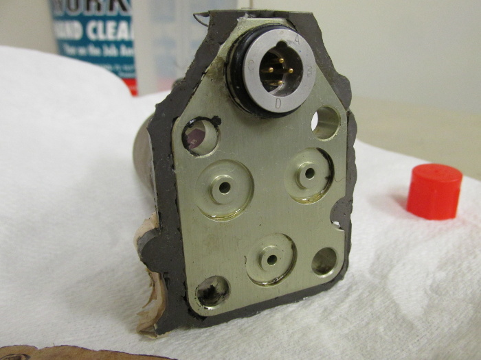 Some safety wire cutting and four allen screws later.....valve off. (The control valve is hydraulically "downstream" from the shut-off valve. We didn't blow reservoir head pressure before removing the valve, but you always get somewhat squeamish before un-mounting any hydraulic components. We lost around 20 drops total.)