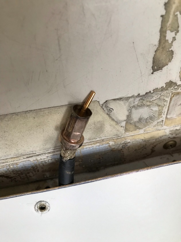 ..... and the coax center pin touching the shield crimp. (Wire has been pulled up in this image to show what we found.)