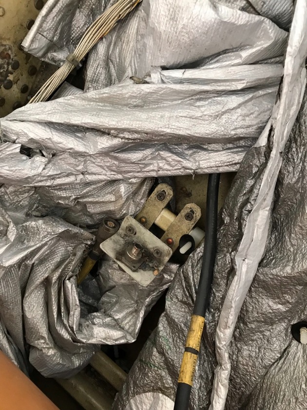 On this 767, there are two disconnects from the transceiver to antenna. One of them is located in the aft pit left lower sidewall. (Below the "DRIVEBAY D" label behind the lower "NO STEP" panel.)