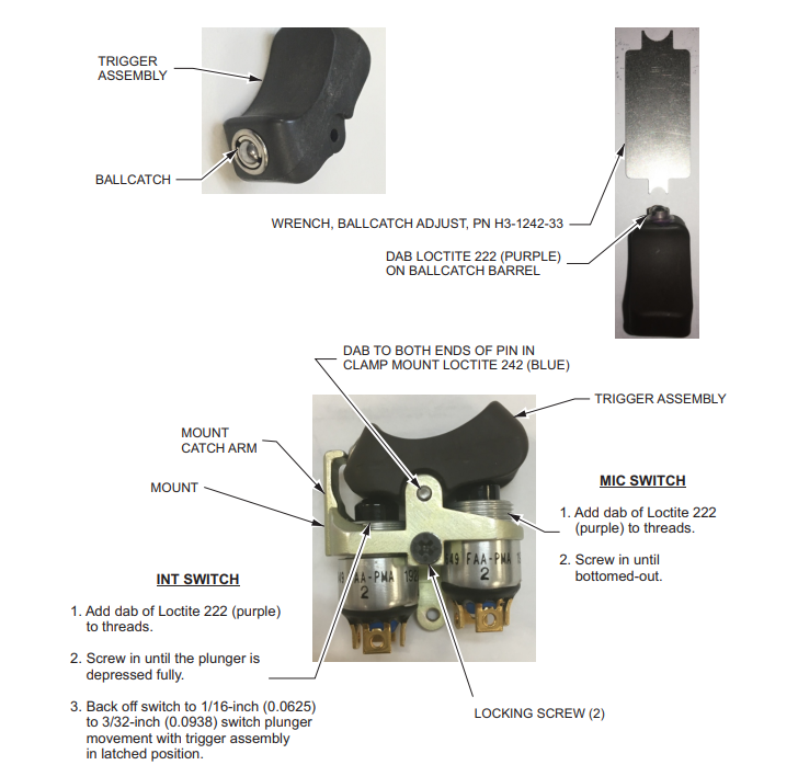 A tool adjusts the height of the ball. To far up..... the switch won't lock. To far down..... and it blocks the switch from being used.