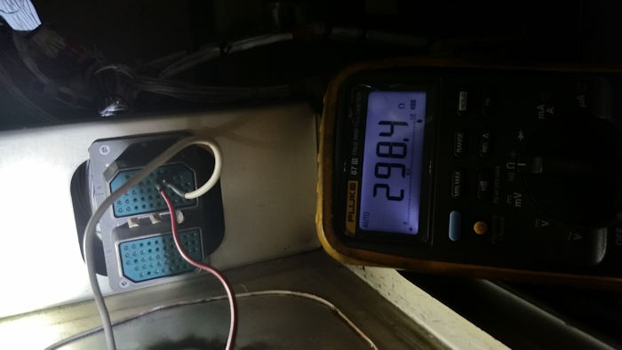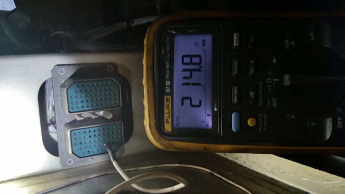 A reading on the #2 transducer (pins 12 & 13 of plug "A") showed a resistance of 295 ohms. This matched several other transducers.