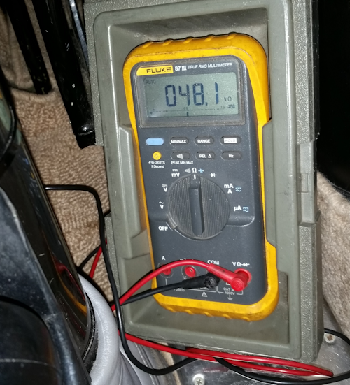 D and E are for the control potentiometer. 48.1K ohms full CCW, 1.2 ohms full CW.