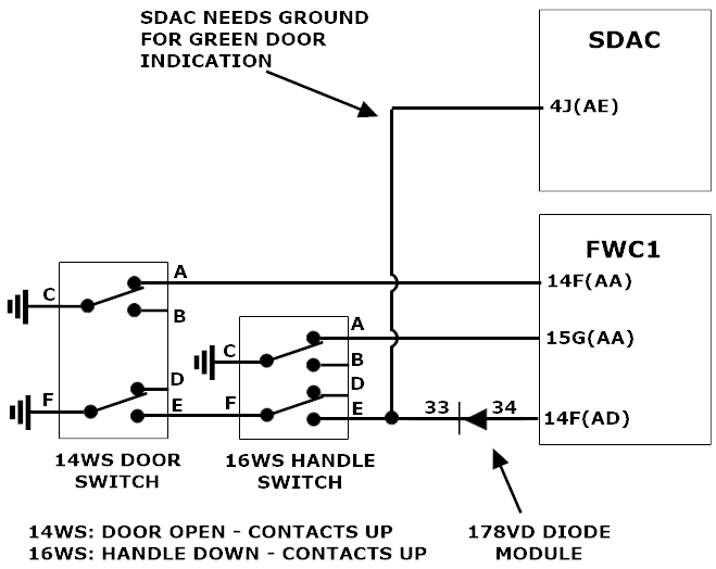 What we had was somewhat strange. With the door hanging open and the handle down, we had a green indication...... not right. We did have a normal green for the door closed and handle up. We could only get a amber with the door open and the handle up. Normal amber comes from "either" the door open or handle down.