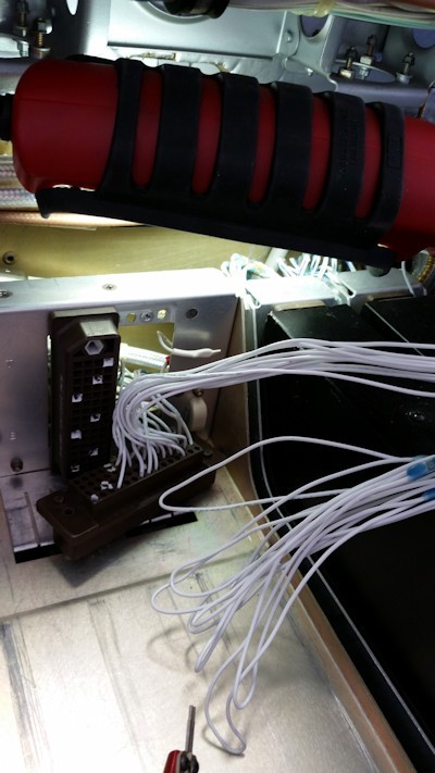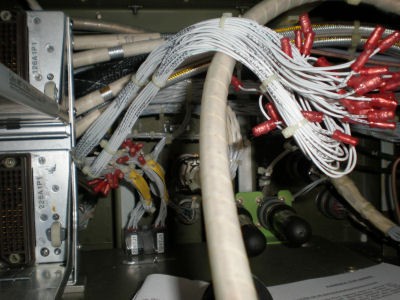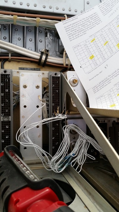 This aircraft has two junction blocks on the outboard side of the racks. Normal thinking would tend to lead to the strapping being done at the blocks. After the wire bundles were opened up, the terminal block wiring led to numerous (disconnected) capped off pins.
