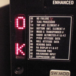 I then ran a test on the TCAS system. I had to align the IRS’s to remove the three failures related to this input (roll attitude, pitch attitude, and heading). Once the IRS inputs were present, the TCAS system indicated “OK”. This told me that the actual #1 transponder was powered up and functioning correctly. If it wasn’t, I would have had an “X1” indicated on the TCAS display.