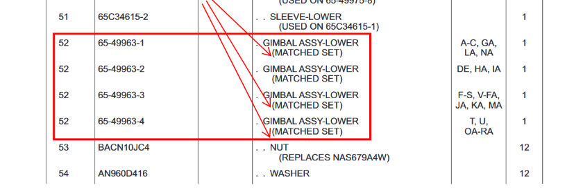 What does "matched set" mean in illustrated part list or component maintenance manual?