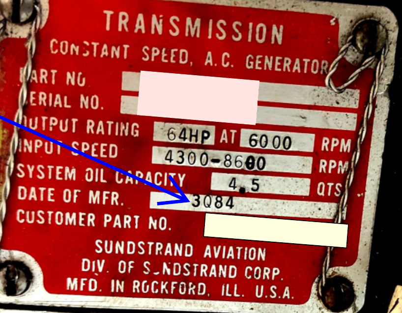 Regarding to the file I have just emailed, what does the date of manufacturing of constant speed drive mean?