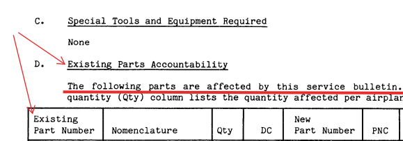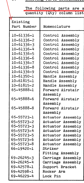 The problem is that for some components such as "forward airstair assy", neither of tabulated part numbers apply to current fleet. Does it mean the airstair assy should not be removed to accomplish the SB??!!!