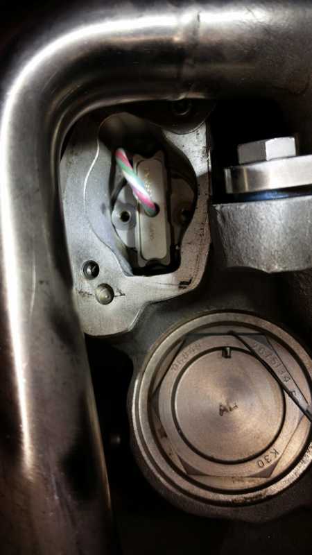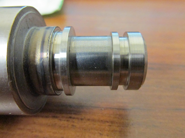 Fuel solenoid end view and side view showing an extremely fine mesh.