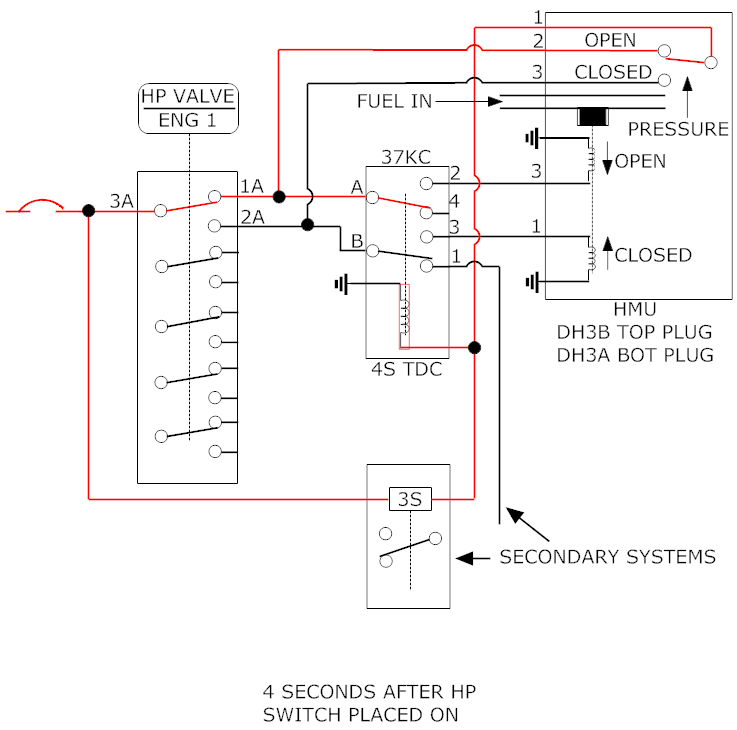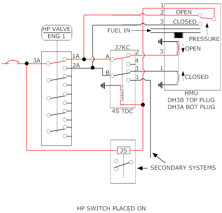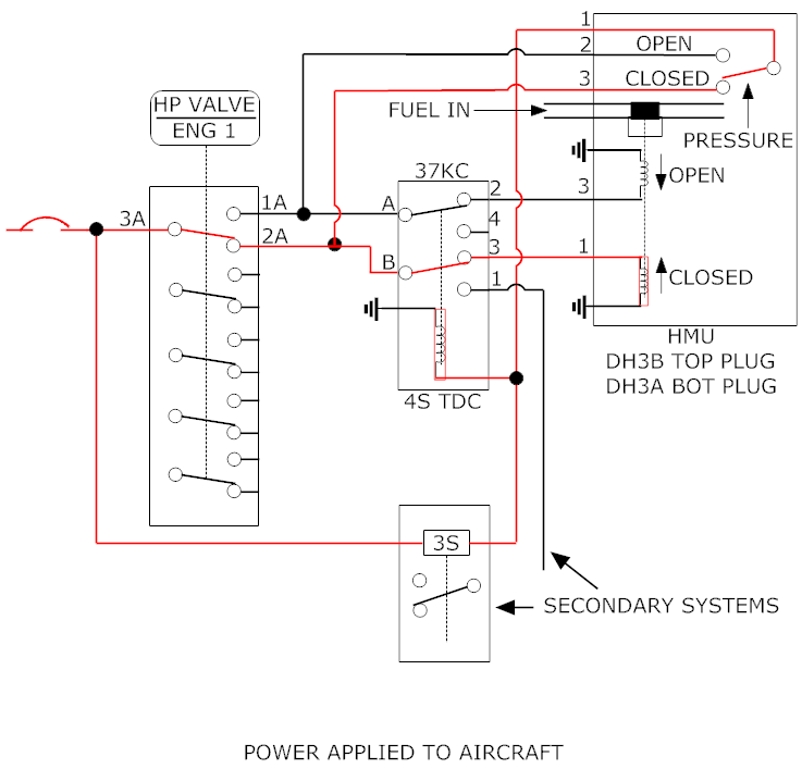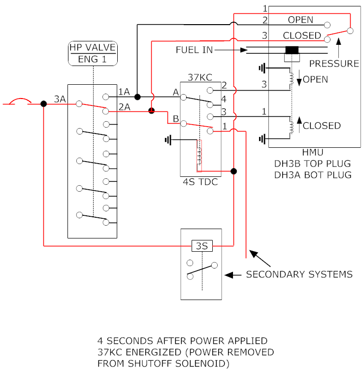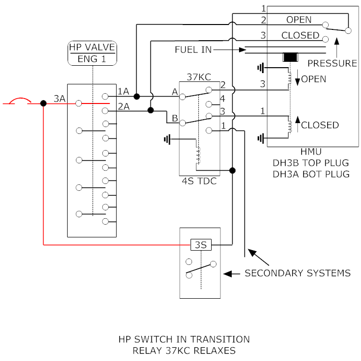 A few drawings to (hopefully) try to explain the relationship of relay 37KC and the fuel solenoid for engine operations on the A300-600. This example is for engine #1. Engine #2 uses 38KC.