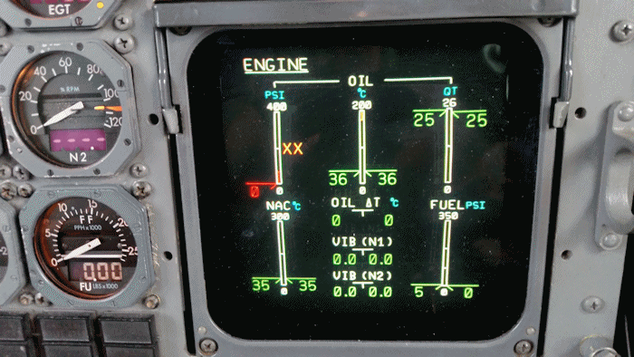 After powering up the aircraft for pre-flight checks, there was a obvious problem on the engine page.