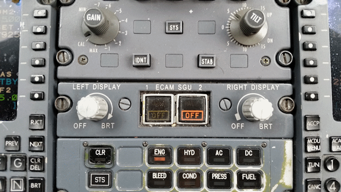 Believing that it could be a "downstream" problem. Simply selecting each SGU off will put both ECAM screens on a single unit.