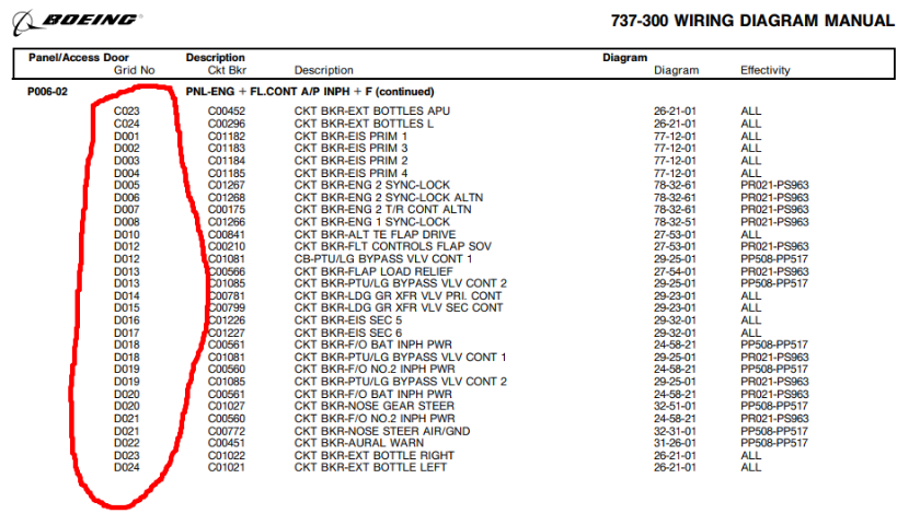 Each breaker has a specific location on each panel. Maintenance Manuals usually call for breakers to be pulled before a task is started. Breaker location is usually mentioned by Panel, Row, and Number.