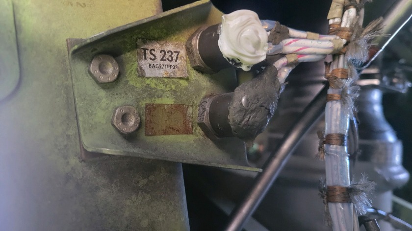 We found one overheat switch with 1422B1/2 or 870 type sealant covering the connection points. All the others had RTV (white in the image).