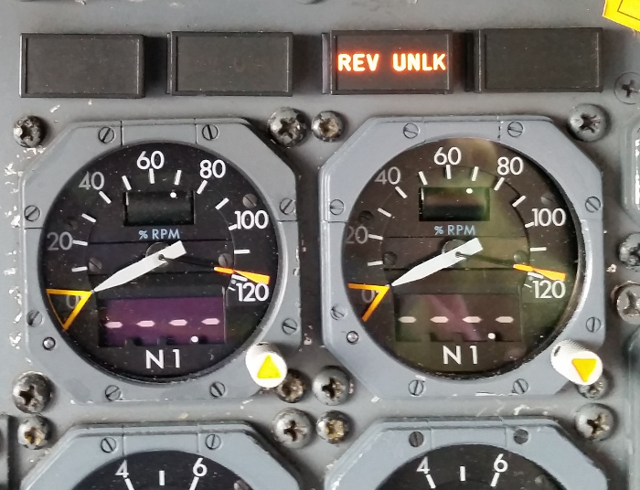 The indication for deploy is correct with the green reverse light on. With the T/R throttle handle down...... you're left with