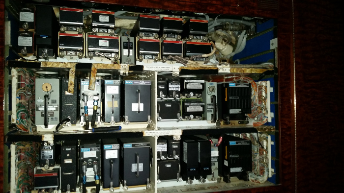 The gyro's were discovered behind a couple of relay boxes on the bottom shelf. All the operator wanted was to swap the plugs before they would commit to buying a replacement gyro. Even that task was a bitch. A hand could not fit under the raised rack. The plugs could be reached by removing the Auto-Pilot Computer and jamming a hand through a cut-out in the vertical wall.
