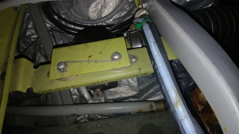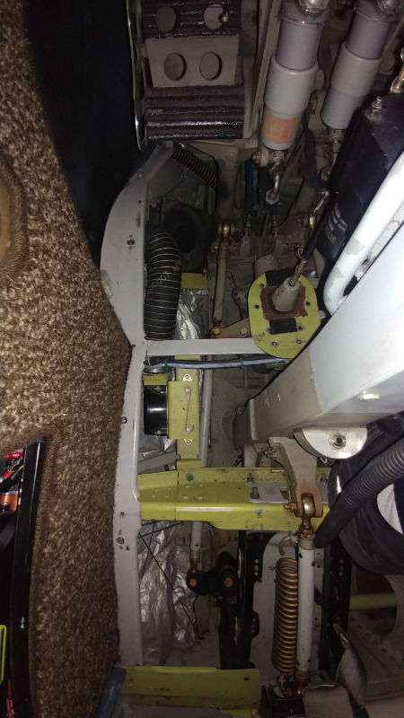 The fan assembly is below the floor, just outboard of the control yoke column.