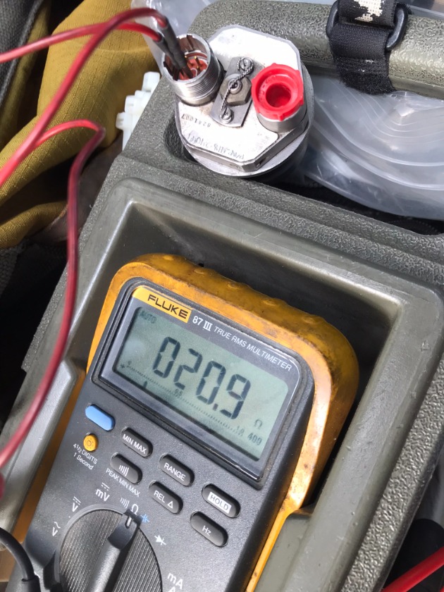 I wanted to know the total resistance across the coil to see if I could substitute one in to drive the indication up. I was somewhat surprised to find just 20 Ohms across the whole thing.
