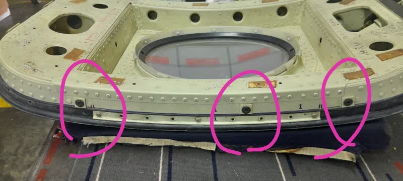 regarding an image of over wing emergency exit door I have just sent an email enclosed with, do you have any idea about three holes in side frame which are highlighted with pink circles?
