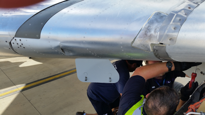 Yes.... that "is" a belt-loader under the inboard pylon. Is it approved? Well..... not really, but ya-gota do what ya-gota do to get the job done.