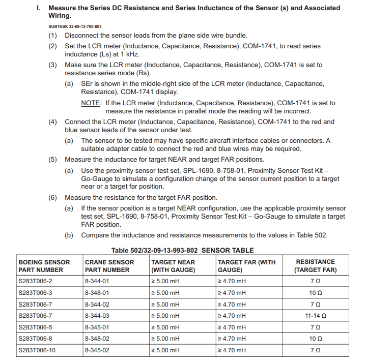 Boeing asks for resistance in the first chart and then states that readings are in mH or Millihenry. Millihenry is a measurement of inductance, not resistance. In the second chart they ask for inductance and resistance, but the readings don't come close to what our meters are showing.