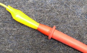 I ground down the tips of my meter test leads about ΒΌ" to accommodate the alligator clips. When I hook up to the meter lead, I push the rubber of the clip over the plastic of the lead. This prevents inadvertent grounding of the alligator clip on metal. It's always nice to see that split second of flash and spark, then be left wondering what you just fried.