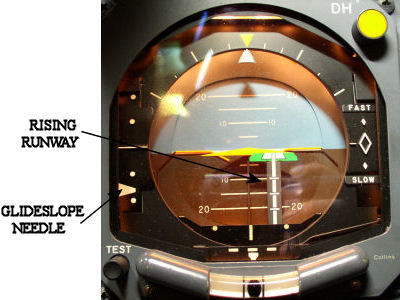 - The “Rising Runway” installed on some ADI’s is a dual indicator. Localizer left and right, with the dots representing 1¼ degrees. The vertical section is radio altitude, with full up representing "on the ground".