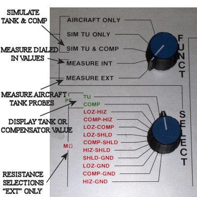 Fuel quantity test boxes are made by numerous manufactures. All will have similar switches and functions. The tester shown here is JcAir® “PSD60-2R.